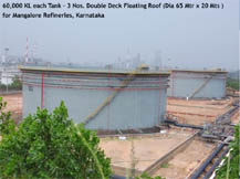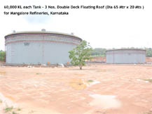 We have executed large Diamater Tank Farm for various Oil Companies like MRPL, IOCL, BPCL, HPCL, HMEL. The maximum dia of tank executed in past on LSTK basis is for 66 Mtr Dia - 3 Nos Floating Roof Tanks.